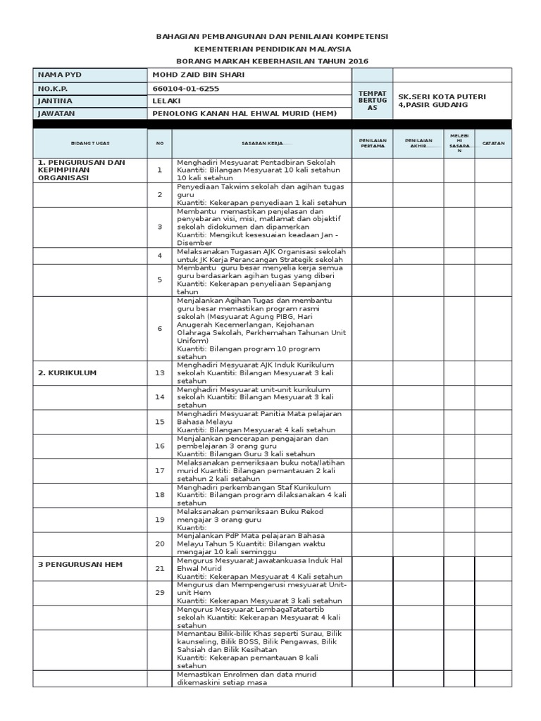 Borang keberhasilan 2021 hem. Bahagian pembangunan dan penilaian kompetensi kementerian pendidikan malaysia borang markah keberhasilan tahun 2016 nama pyd gred jawatan nokp.